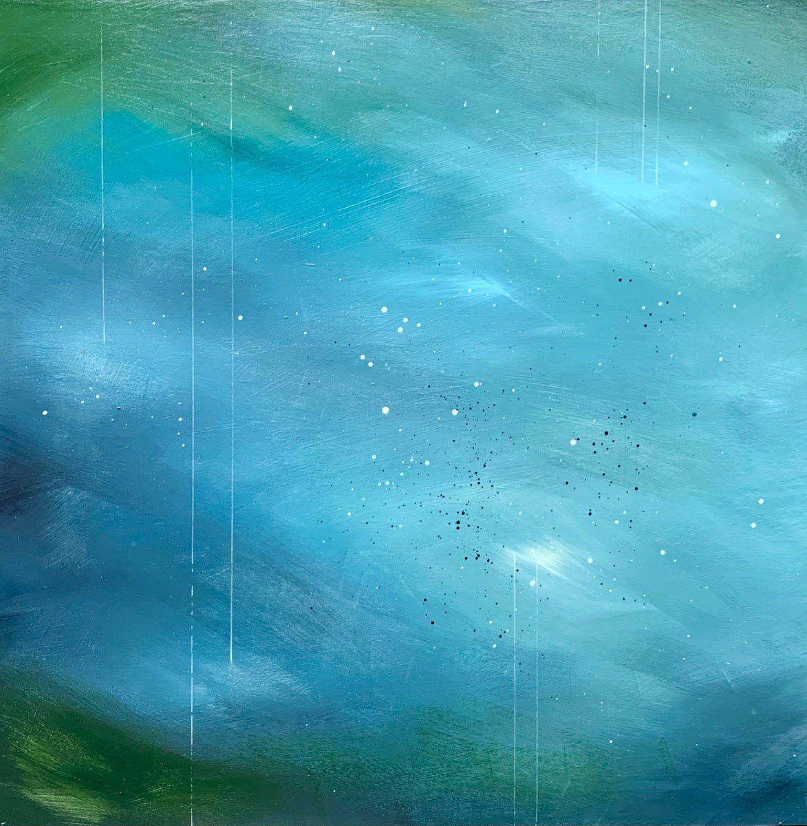 My paintings begin intuitively, with a few tones inspired by the world around me and mixed directly on the canvas. I move pigment, explore and experiment with tactile textures or fluid splatters, adding and subtracting as a conversation unfolds between the piece and myself. A contemplative dialog of exploration and curiosity. The results are immersive mood pieces that contain moments of calm and space for reflection. I hope that the viewer feels the invitation to pause, to explore the artwork and delight in discovery, to breathe in the moment.