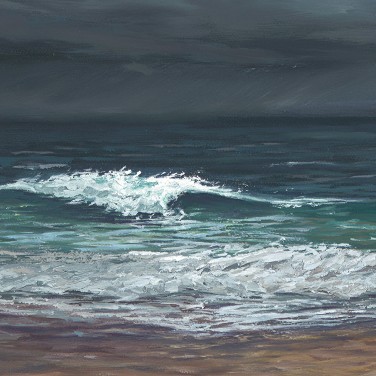 I clearly remember the first time I saw the ocean as a child. I struggled to grasp the vastness straining to see land on the other side. In my paintings, I explore capturing the memory and mood of the ocean. Painting realistic scenes allows me to step into a memory using brush strokes inspired by impressionists to capture the mood and environment. These approaches invite the viewer to recall their own memories of the ocean.I use my own photo references to inspire the scene of each of my paintings. I find it important to draw from my own experiences, so I can truly capture the moment. I start with a sketch to refine the composition adjusting the reference image to create harmony. Painting in oil simulates the same peaceful feeling I get when standing by the ocean. The tactility that oils bring when painting gives me the ability to layer and create depth. The fluidity and slow-drying nature of the oil paints allow me to push and pull the paint into the memory of the waves.