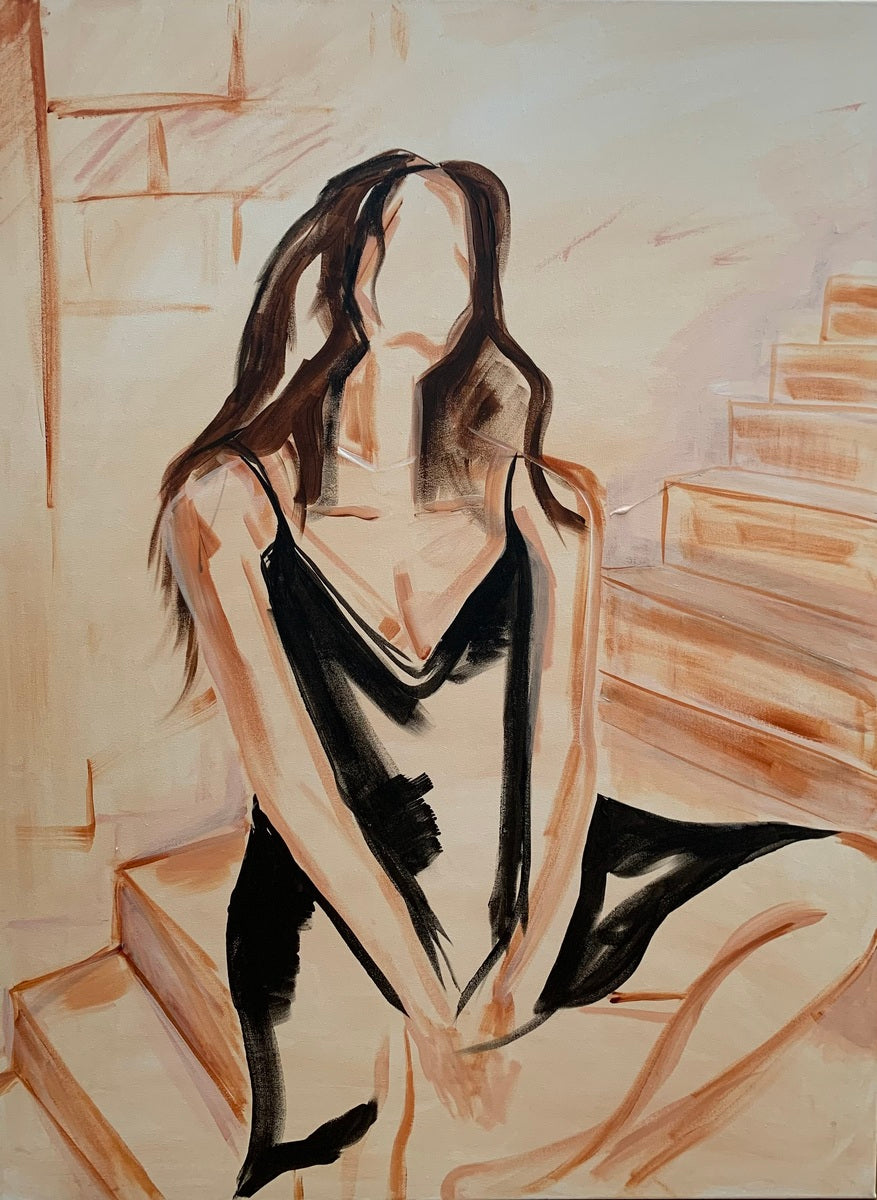 Focused on the female form, my art visually describes a thought, feeling or emotion for the viewer to connect with. Sometimes what is present on the canvas is just as important as what’s not, giving the viewer space to explore and uncover their connection with my work. My paintings often evoke a memory, remind the viewer of a loved one or a specific time and place, but create a feeling that is extremely personal to them. I mainly paint with acrylics, with bold and carefully placed mark making, and reduced colour palettes to fit into modern decors. The main idea behind my work is to offer a place for me to escape and dream while I’m creating it, and give viewers a similar experience when visually taking it in.