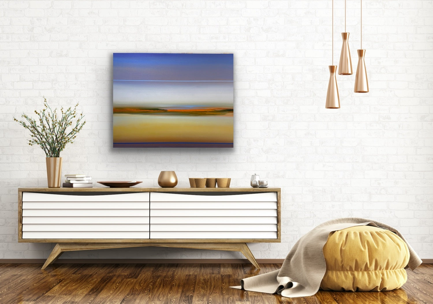 Using the sensual qualities of oil, I create layered abstractions which explore the dynamics of color, line, and texture. The viewer is encouraged by their abstraction to interpret their experience of the work rather than the work itself. My work plays with the abstracted modern landscape often with a strong horizon line. I use light and dark, space and scale, encouraging the viewer to step into the work to react and reflect.