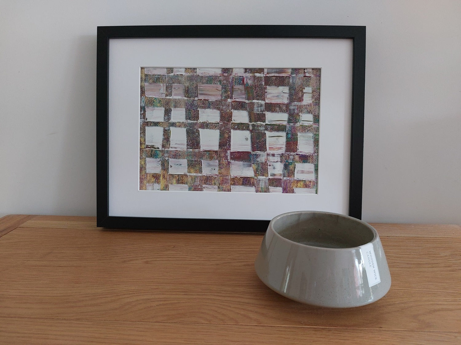 Acrylic abstract on paper. Scraped paint produces strong texture and 3d effects. Inch border perfect for framing. Signed and dated, 1 of 1, not a print.