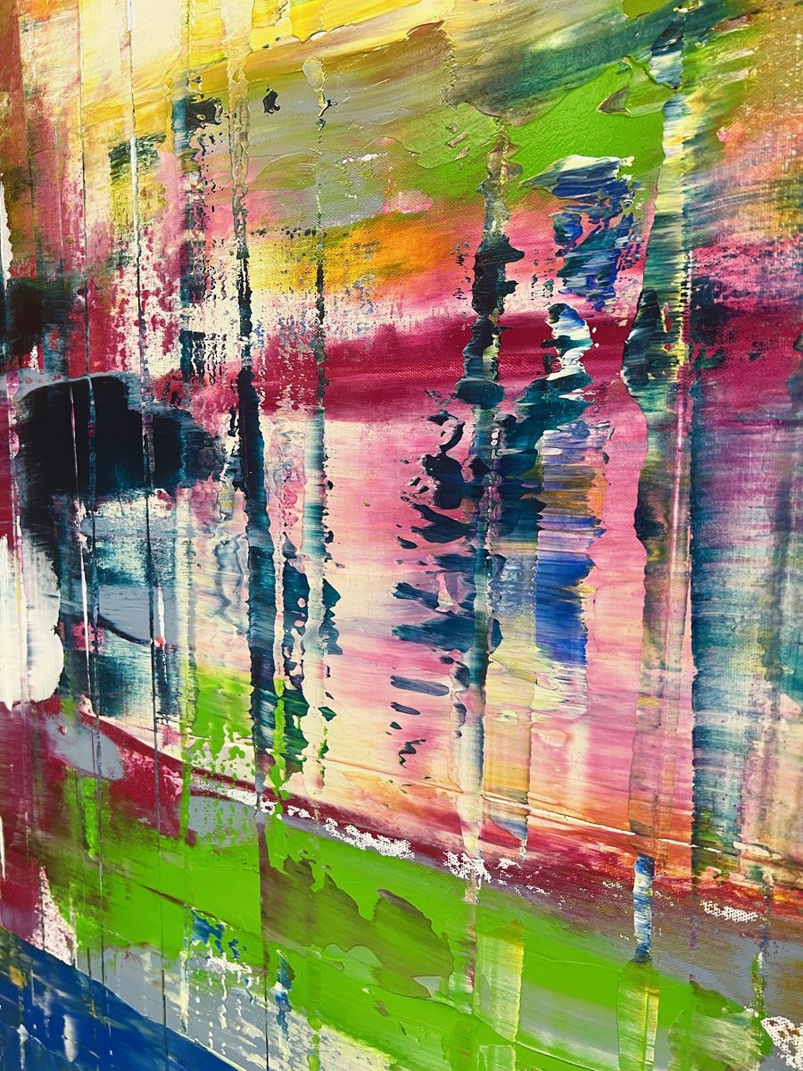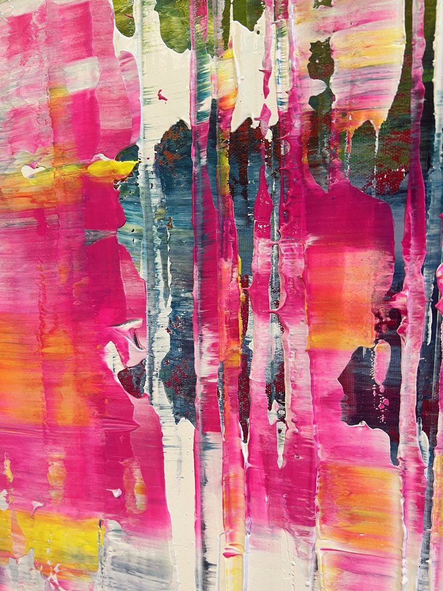 Monica is a self-taught artist, everything she knows is something she has experimented for a long time. And she still loves learning every day. Using art as a way to communicate passions and emotions, she creates colourful and large abstract paintings, inspired by the great art of her favourite artists, Jackson Pollock, Gerhard Richter and Frida Khalo.