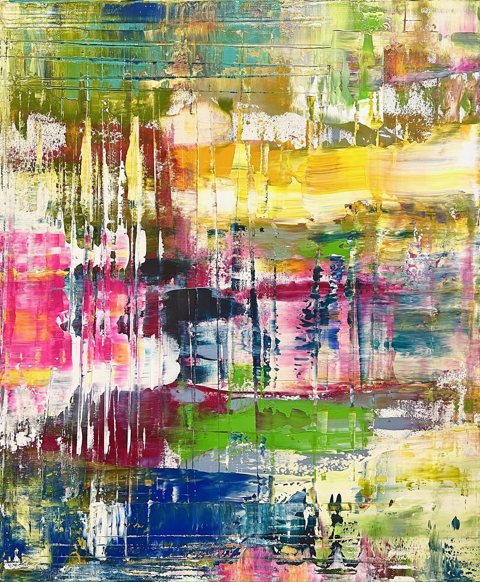 Monica Maja Richardson is an abstract artist from Rome.After a successful career as a TV presenter in Italy she moved to London in 2004, and focused on her passion for painting. Monica spent years in her studio experimenting with a variety of tools and colour palettes, developing her own freethinking style.