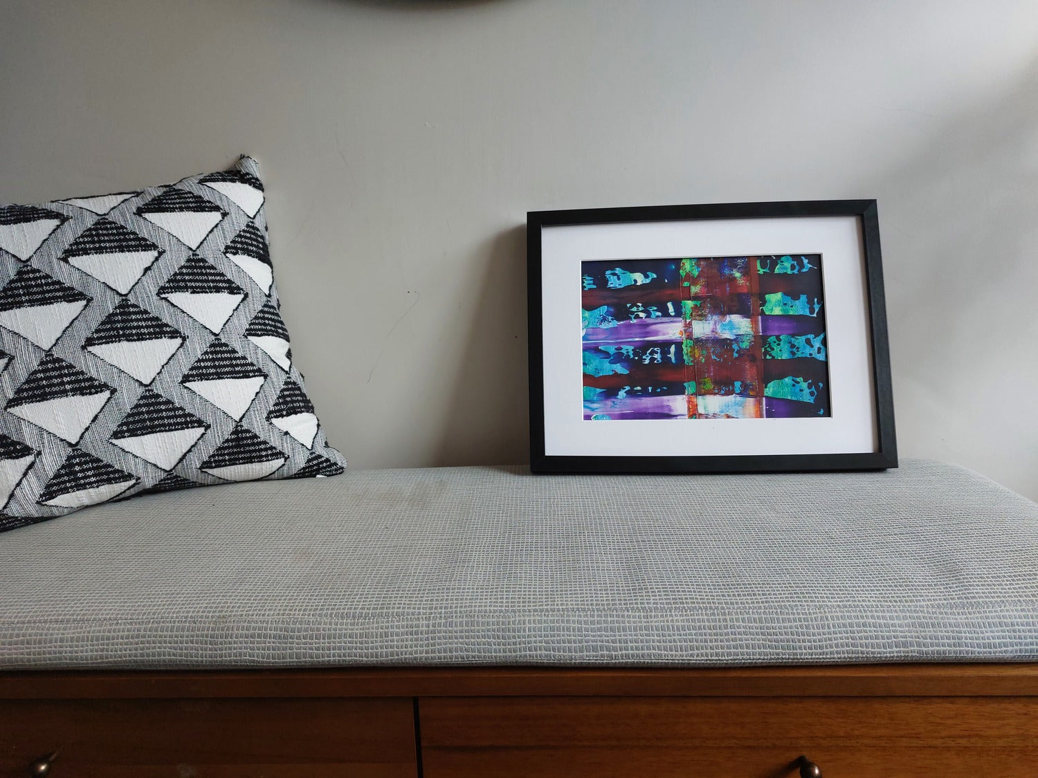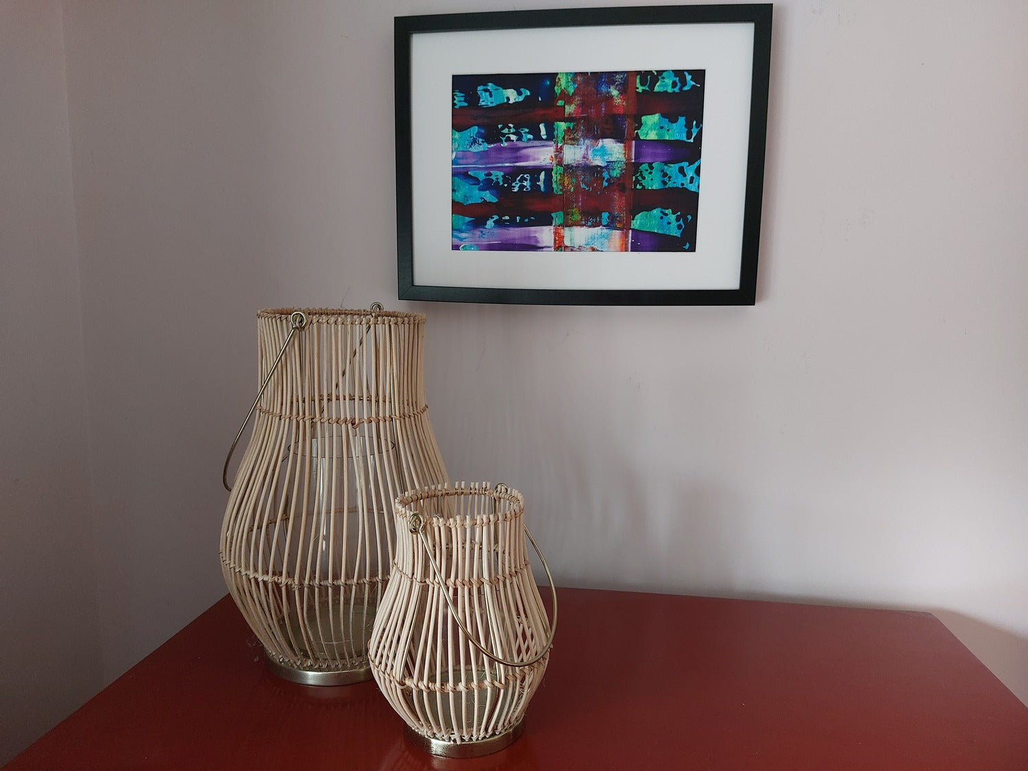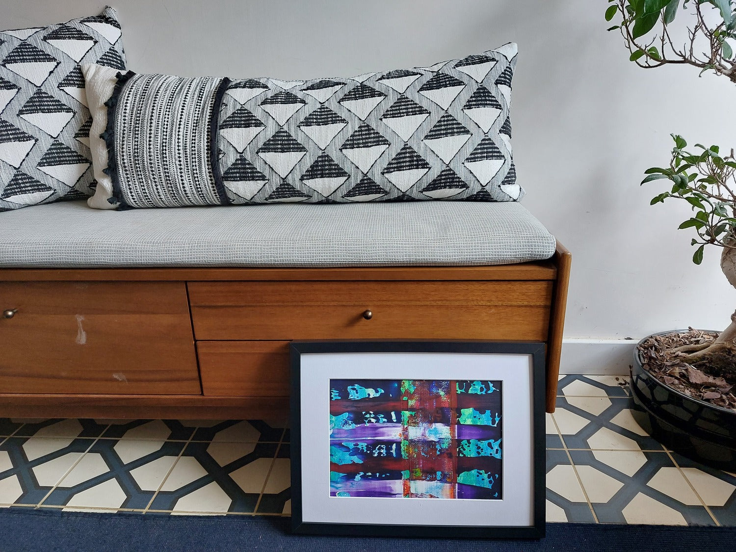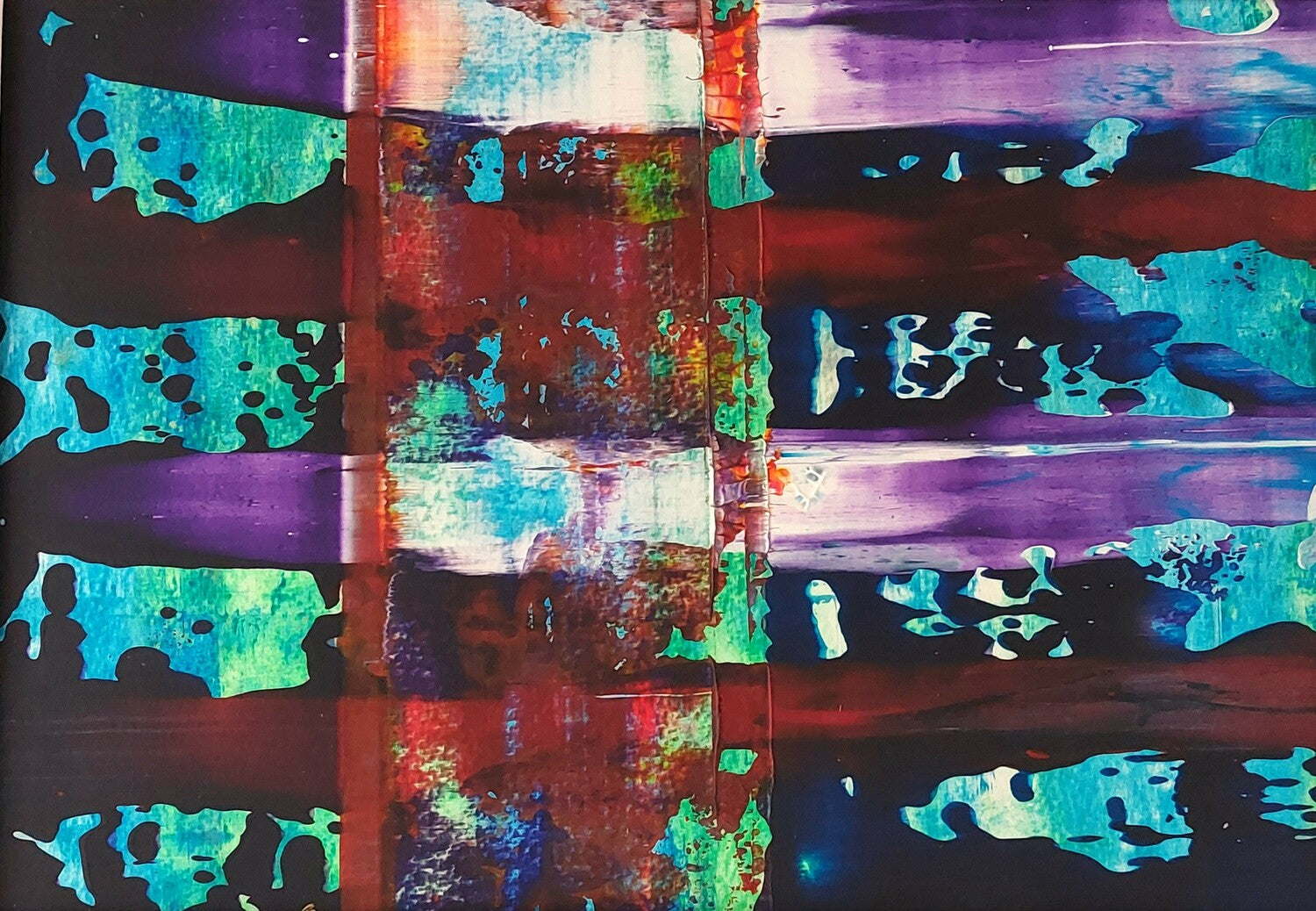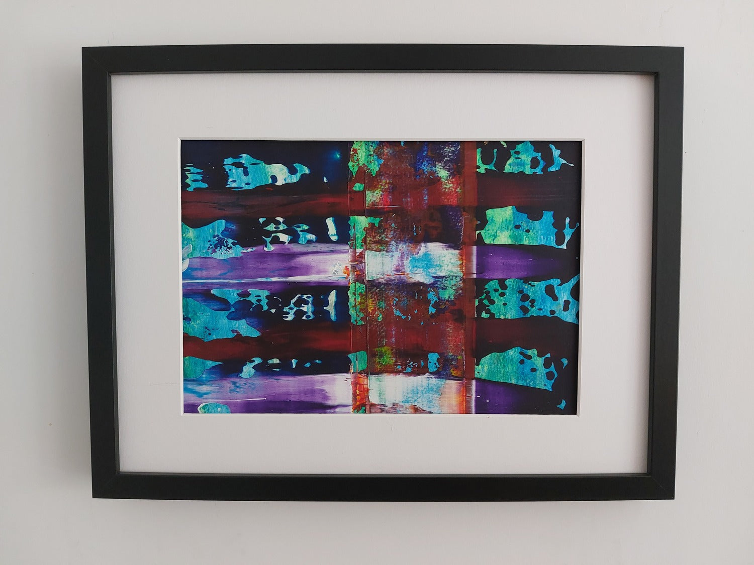 Abstract acrylic on high quality watercolour paper. Very strong colours. Thick payers of paint adding texturality. One inch border.