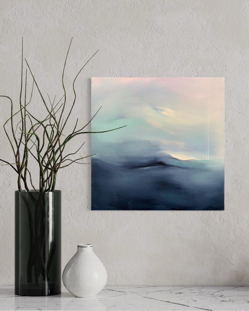 My art is a form of therapy, developed in response to the frantic energy of modern life. I use expressive abstraction and a Pacific Northwest palette to explore a meditative practice, creating space for what I feel or need. My paintings begin intuitively, with a few tones inspired by the world around me and mixed directly on the canvas. I move pigment, explore and experiment with tactile textures or fluid splatters, adding and subtracting as a conversation unfolds between the piece and myself. A contemplative dialog of exploration and curiosity. The results are immersive mood pieces that contain moments of calm and space for reflection. I hope that the viewer feels the invitation to pause, to explore the artwork and delight in discovery, to breathe in the moment.