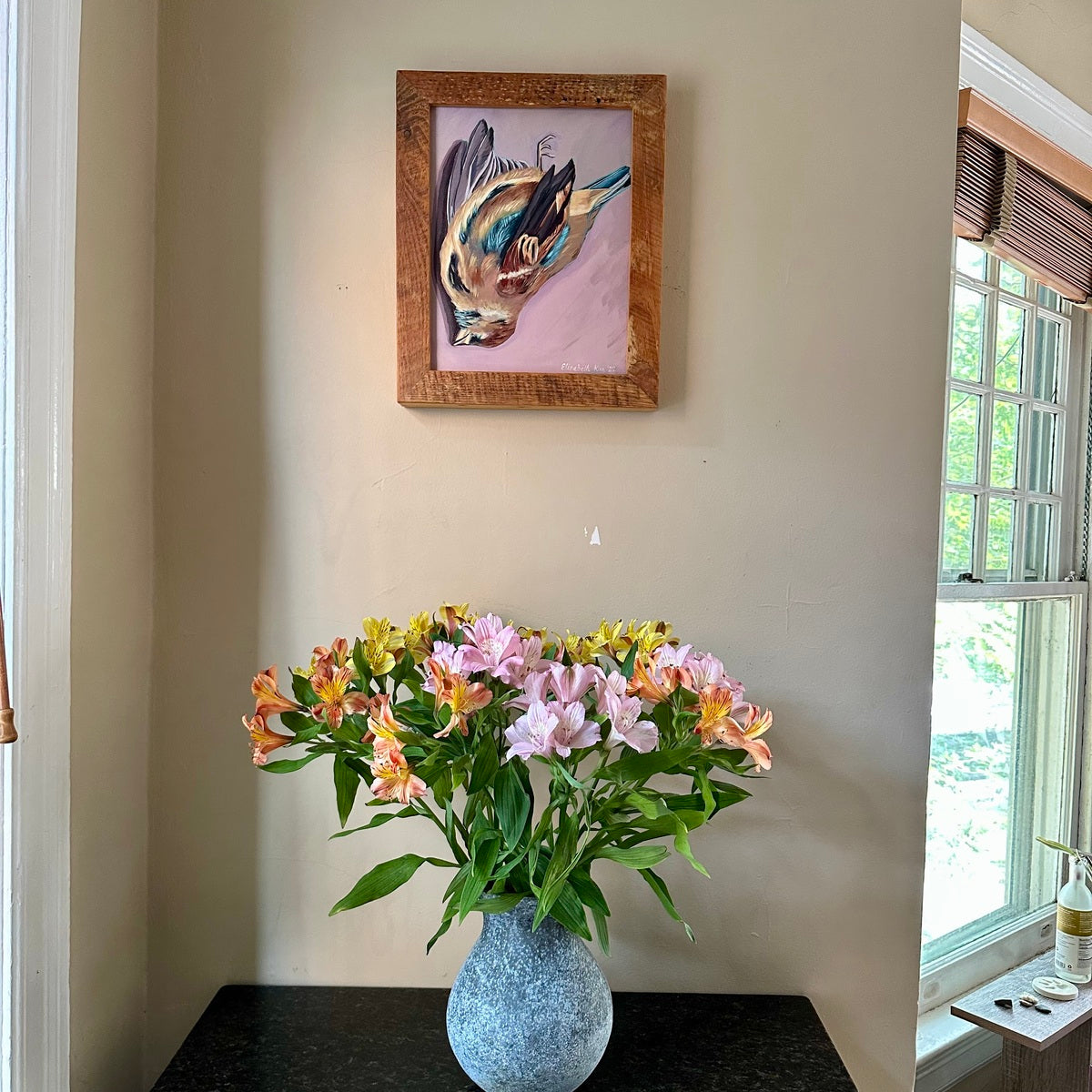 Elizabeth Kim paints anything that inspires a sense of finding beauty or playfulness in the ordinary. Her vibrant interpretations of everyday images aim to uphold an other-worldly or dreamlike lens through which the viewer can experience ordinary scenes as something magical. Captivated by disarray, old or discarded objects, and all facets of human individuality, she treasures the search for subjects in her everyday life just as much as the process of painting them.