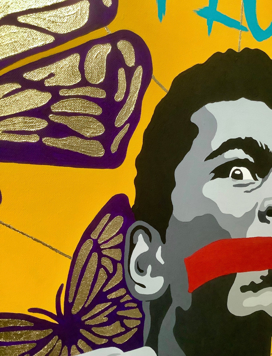 He now uses his creativity and imagination to create one of a kind abstract pieces filled with vibrant colors and a semi realistic interpretation of his surroundings and the African American culture, all from a black man's perspective. Creating what feels right in his heart and if it doesn't resonate, then it won't see the light of day.