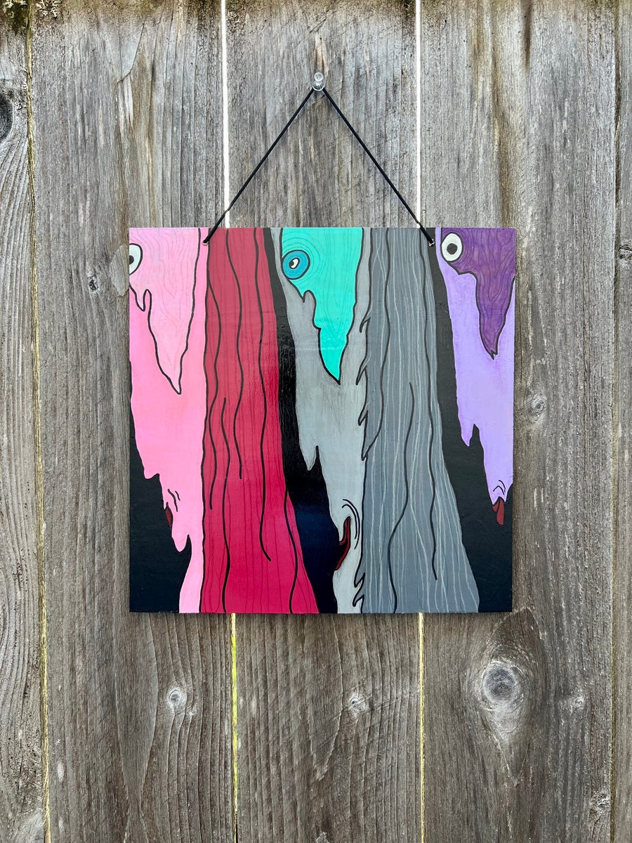 Night after night, Melissa found solace in painting as she immersed herself in the world of murder mystery TV shows. Over time, she amassed a collection of art pieces, each lovingly crafted on reclaimed wood with intriguing grain patterns. Encouraged by her husband, Melissa decided to share her creations with the world.