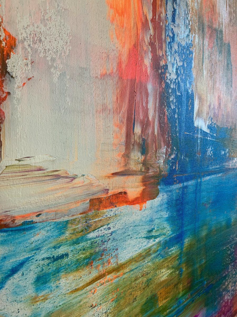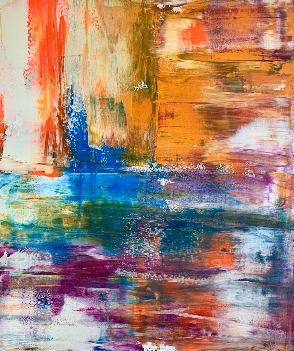 Monica is a self-taught artist, everything she knows is something she has experimented for a long time. And she still loves learning every day. Using art as a way to communicate passions and emotions, she creates colourful and large abstract paintings, inspired by the great art of her favourite artists, Jackson Pollock, Gerhard Richter and Frida Khalo.