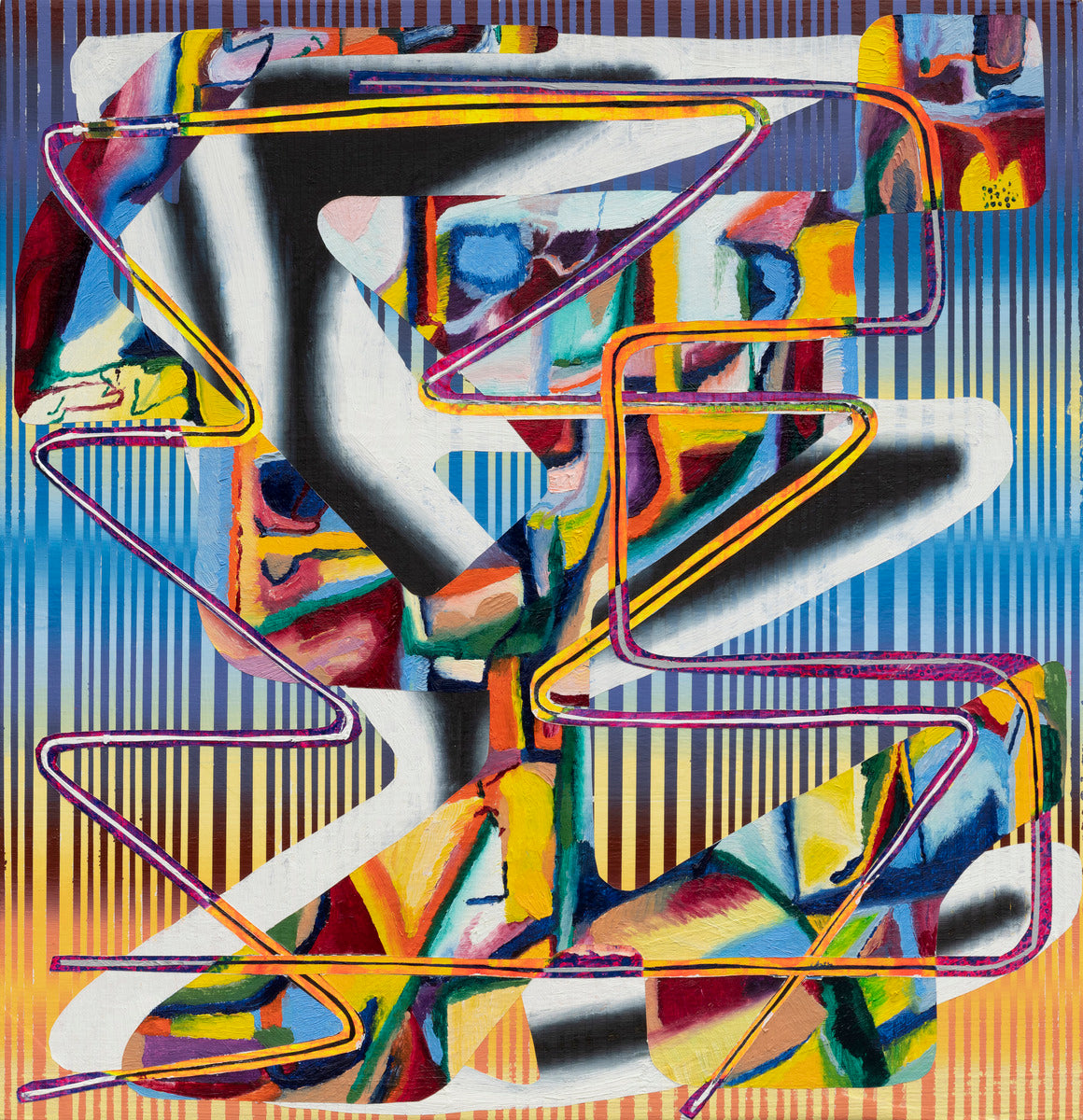 Drawing on outsider art sensibilities, and inspired by living in a city in the digital age, Zack describes his work as a search for balance within the 2D picture plane, fusing craft-oriented patterns, shapes, and motifs- to create abstract narratives for the viewer to mine visually.