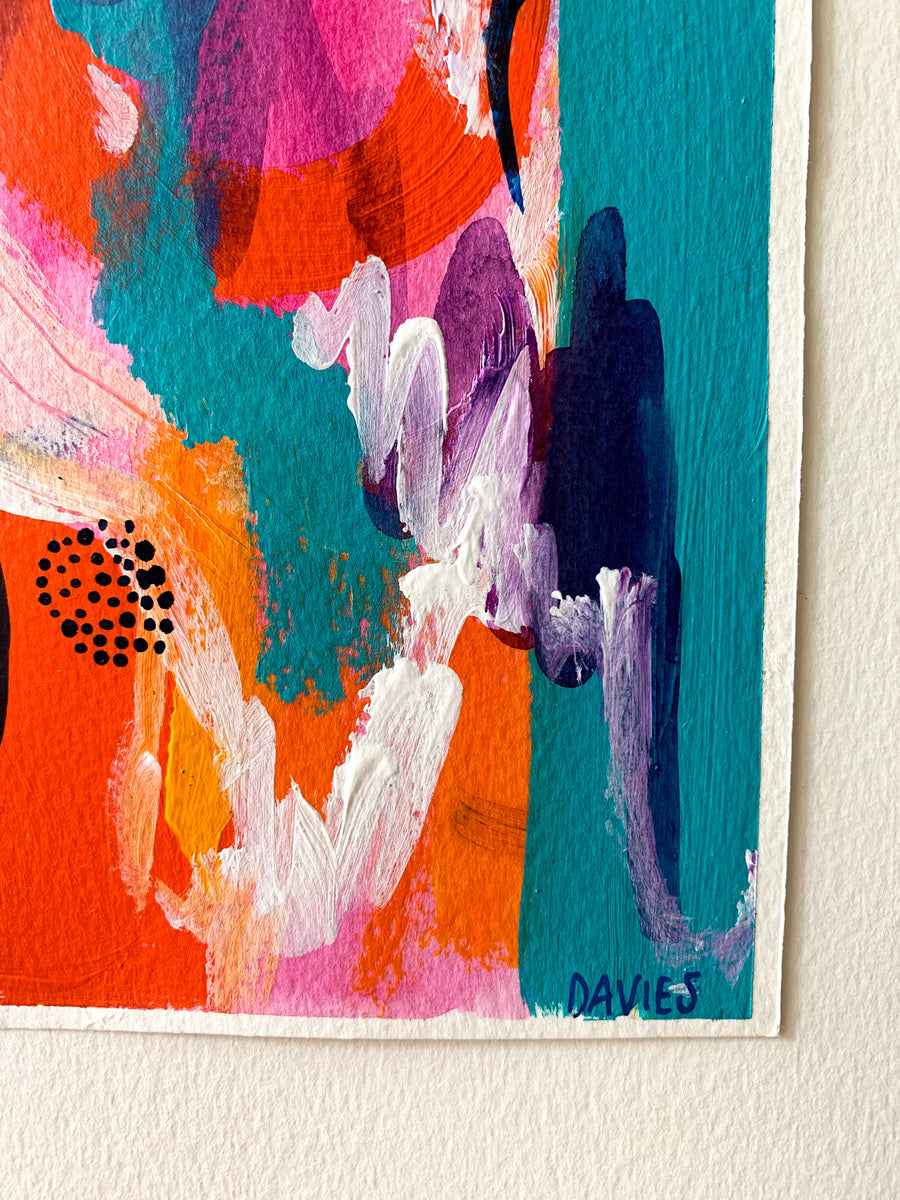 Jo Davies is an Australian mixed media artist living in East London. She would describe her paintings as dreamy abstracts that are designed to bring positive energy to the viewer. Davies has a BA/Btch majoring in Visual Arts and is a full-time secondary art teacher in South East London alongside being an all-the- time artist.