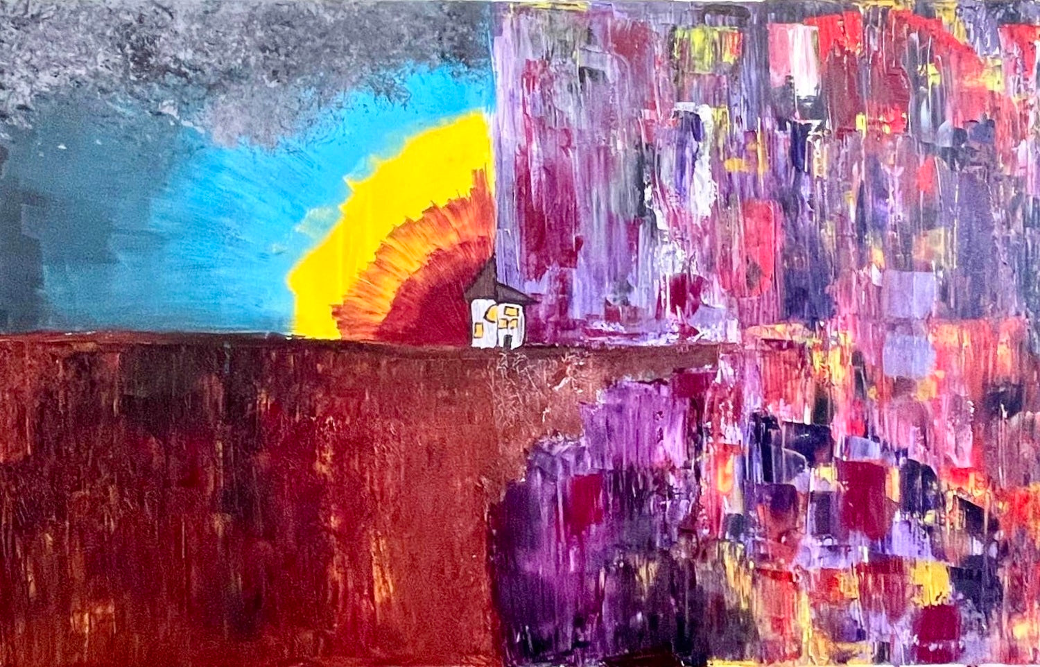 For most of my adolescence and young adulthood, I dreamed of being the writer of next great American novel. As I grew older, it became harder and harder to put pen to paper, to answer the blinking cursor on the blank screen. Life and adulthood took their turns (not all bad) (not all good), and it culminated in the Pandemic. I needed an escape from the boredom of staring at a screen. At the whim of my significant other we tried pouring acrylic paint on canvas. To my immediate surprise, I felt a strong connection to the colors and the way they came together. It spoke to me in terms that I understood on a level deeper than language. This has led to a great exploration of techniques and styles that show up in the sheer number and variety of works that I have created thus far. My work is meant to convey this freedom from having to put language to my thoughts all of the time. Sometimes it is enough to have potential of the thought or the feeling expressed in brushstrokes and paint splatters and crumpled tissue paper.