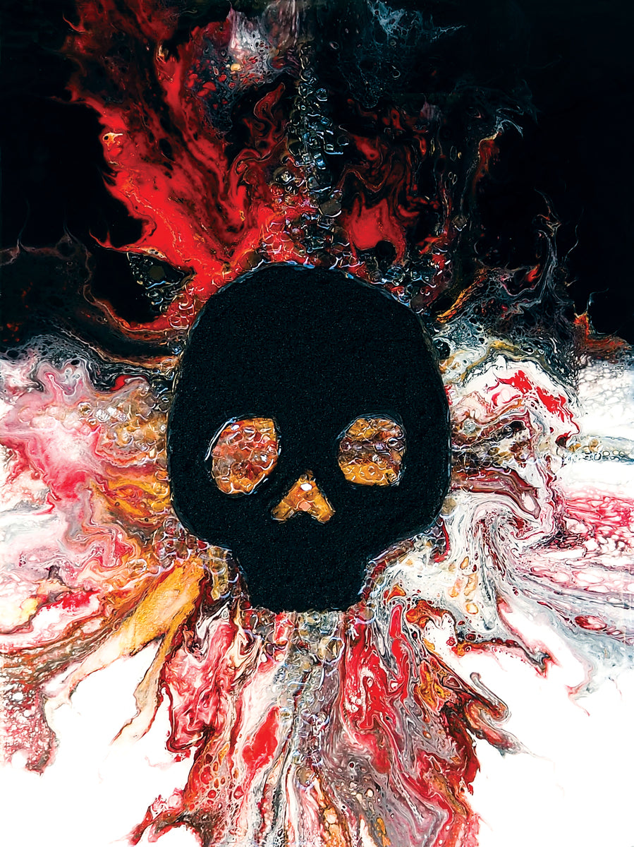 Acrylic paint, crushed glass, pumice paste, and resin on canvas