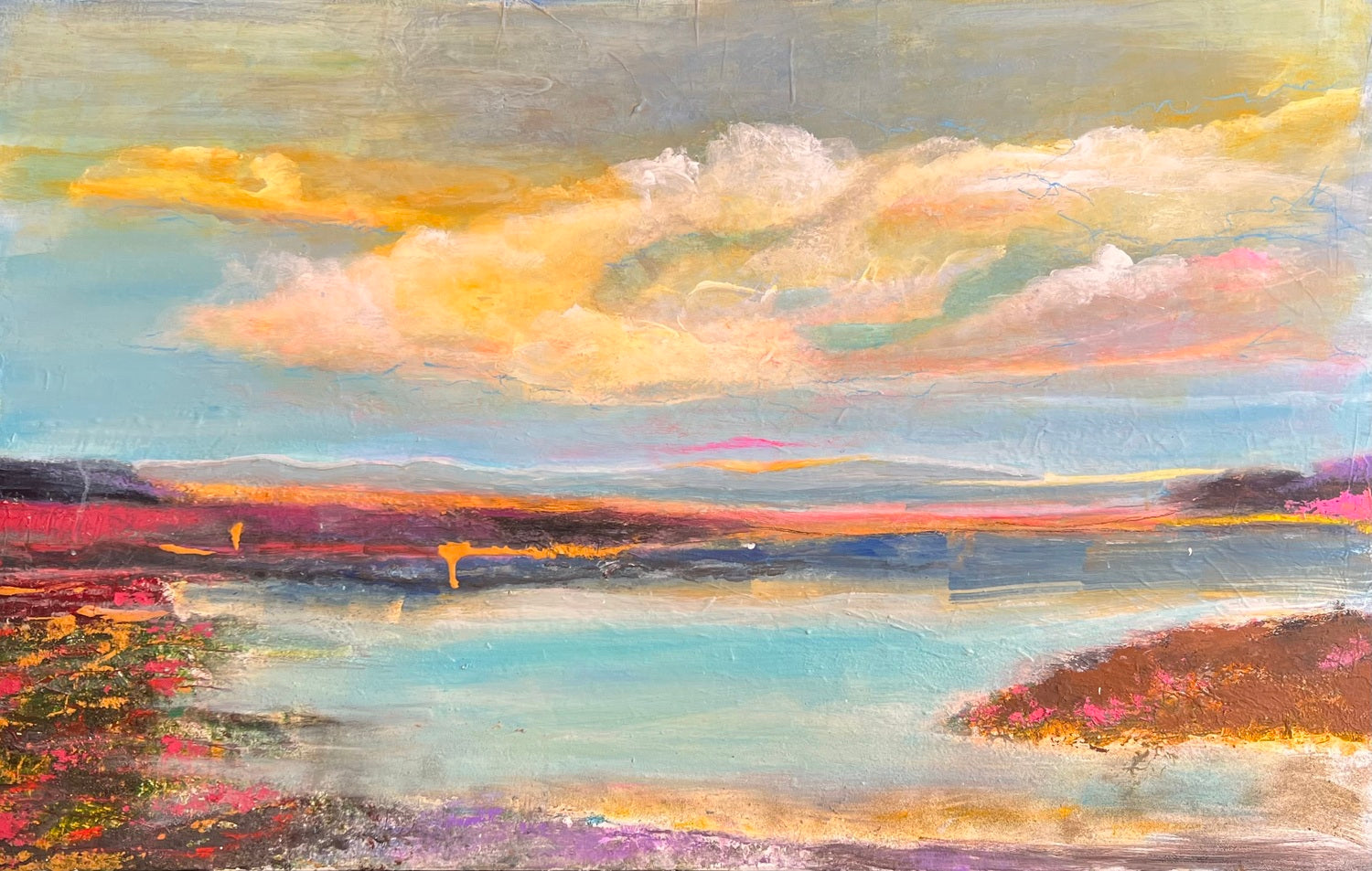 I enjoy painting landscapes and love distilling them into abstractions of form , shape, design, and color. I have experimented with collages and multi-media creations and am drawn to that as well.