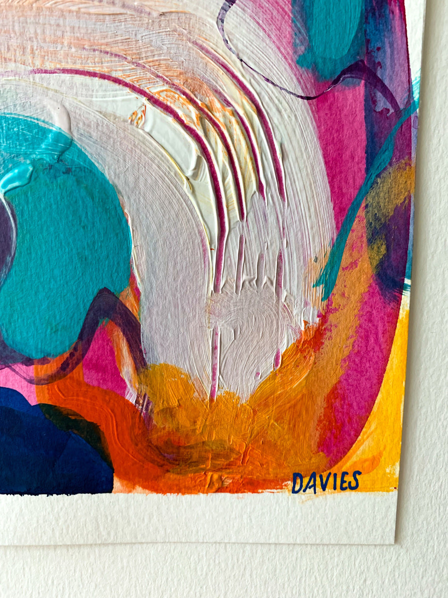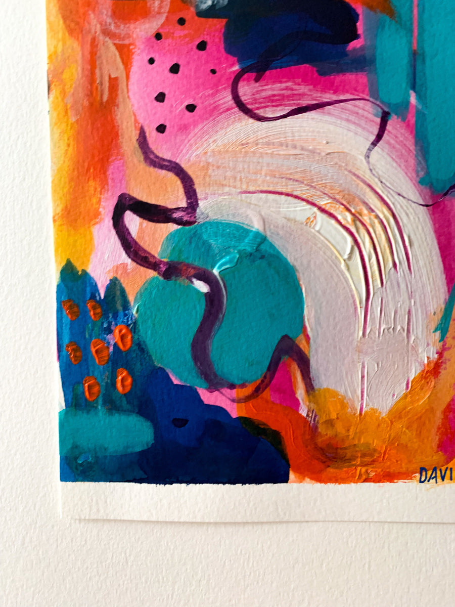 Jo Davies is an Australian mixed media artist living in East London. She would describe her paintings as dreamy abstracts that are designed to bring positive energy to the viewer. Davies has a BA/Btch majoring in Visual Arts and is a full-time secondary art teacher in South East London alongside being an all-the- time artist.