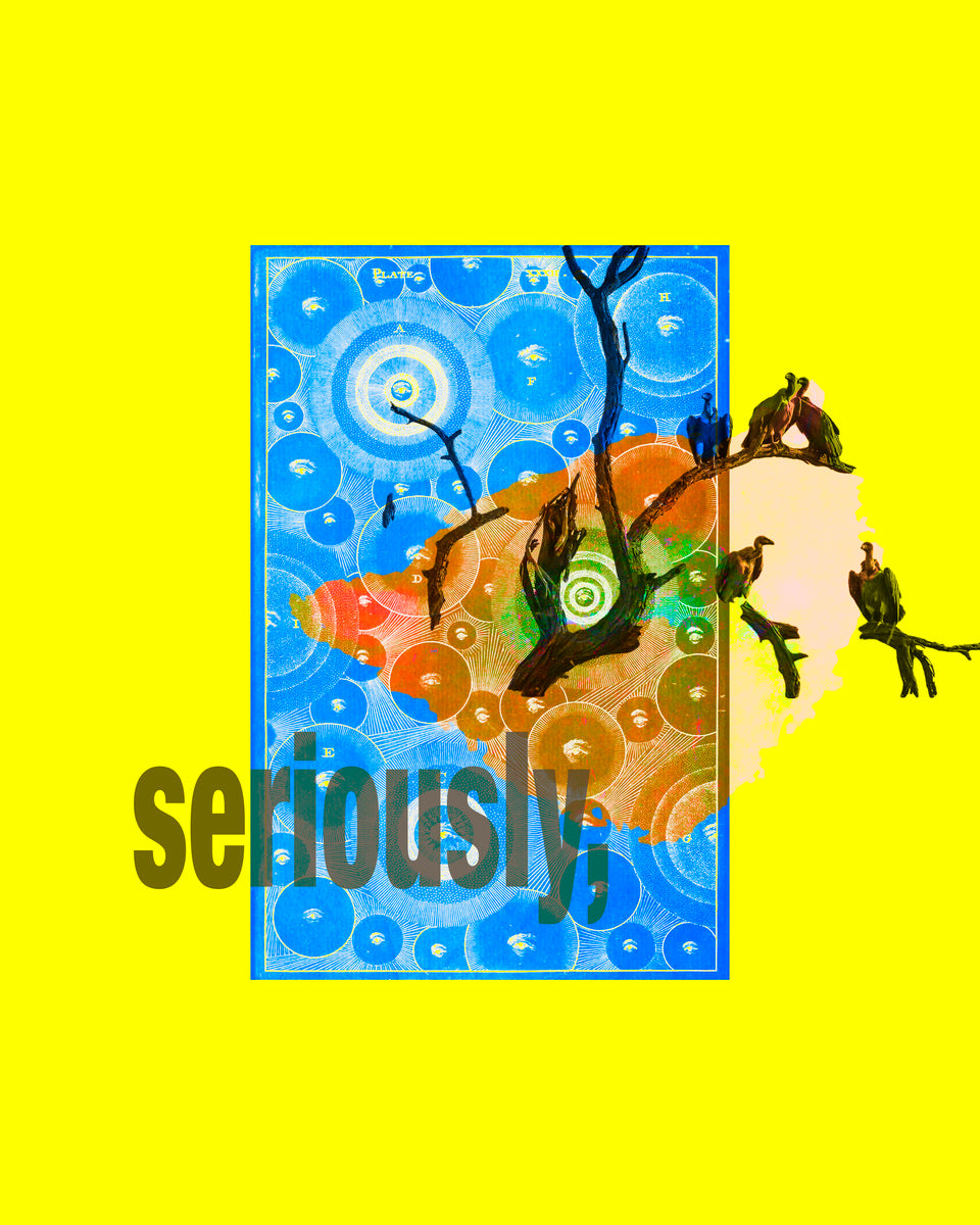 While creating, I follow my instinct and desire to connect through exploration and play – blending my own pictures with others culled from the public domain. Artmaking is a deeply immersive activity steeped in experimentation and discovery. Each work is an assemblage: adding, deleting, editing, and adding that final touch, often a single word.
