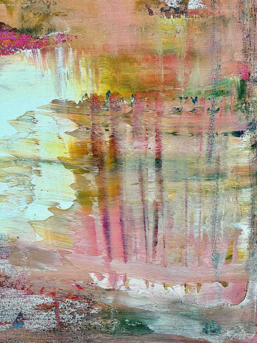 Monica Maja Richardson is an abstract artist from Rome.After a successful career as a TV presenter in Italy she moved to London in 2004, and focused on her passion for painting. Monica spent years in her studio experimenting with a variety of tools and colour palettes, developing her own freethinking style.
