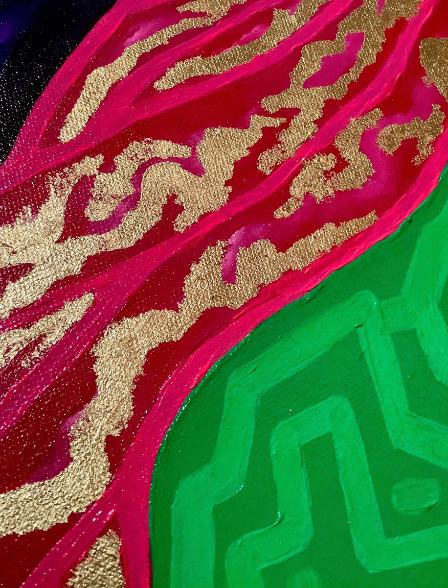 Acrylic paint on 20x24 in. canvas with gold leaf accents.