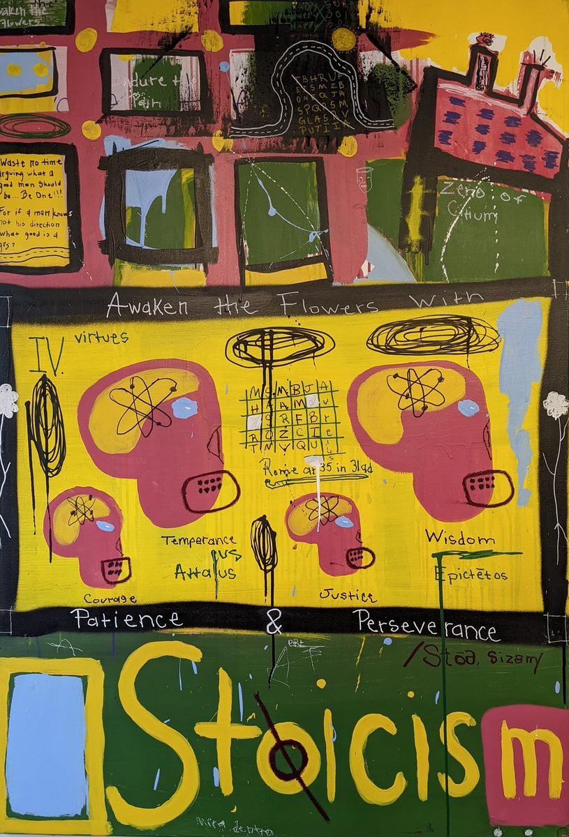 The paintings of Edú are crafted from the perspective of a young soul. Using an ensemble of flawed characters who tend to be walking contradictions. Each color, stroke of the brush, splash of paint, and symbol found in the art works act as representatives of the message in the story. Using playful color palettes to accompany melancholic messages that create such unique and emotional inertia has allowed Edú to explore future "what if's".