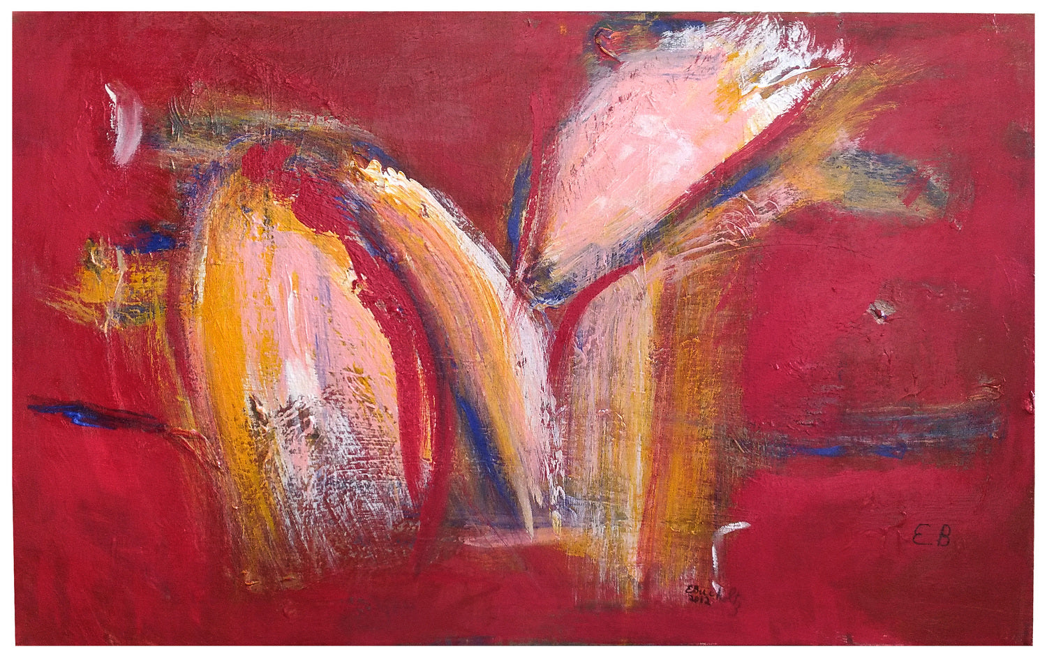 In terms of the historical sweep of art development, my work easily falls under the general rubric of Abstract Expressionism. However, it moves on from that approach to a more lyrical style with an innovative use of very informal strokes, incomplete forms, unusual arrangements, and "accidentals", gestures that seem to fall where they may, to create a more serendipitous experience for the viewer. My use of color, too, is unique to my style by being freely chosen based on visual connections rather than on rules.