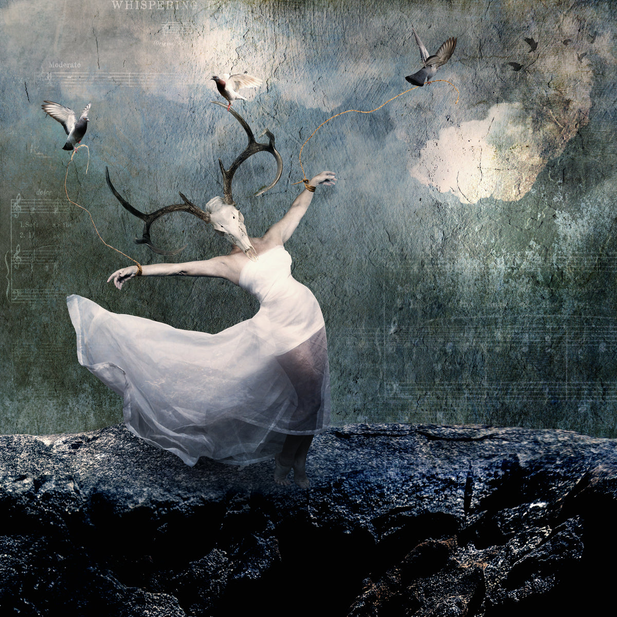 In "Taken to the Sky," a surreal self-portrait composite, the artist delves into the hauntingly beautiful world inspired by the timeless song "Rhiannon" by Fleetwood Mac. Here, the artist embodies the enigmatic spirit of the song's titular character, a woman deeply intertwined with the magic of birds and the mysteries of life and death.