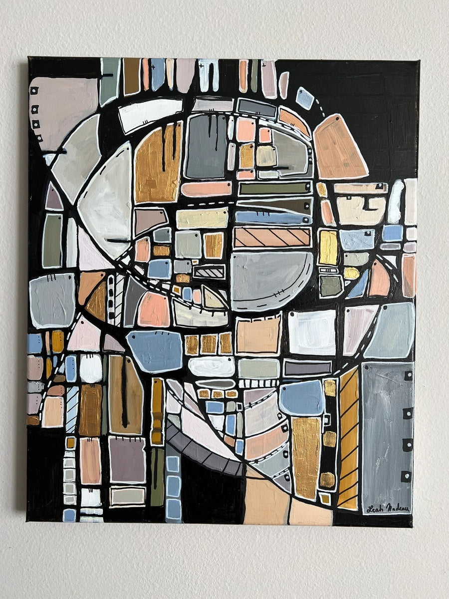 Leah Nadeau is a Seattle-based contemporary abstract artist known for her use of geometric compositions, bold color stories, and signature linework. Nadeau’s aesthetic is defined by vibrant color blocking and energetic lines. She creates a unique rhythm between chroma and contrast as she paints, lending every painting an immediate sense of vitality. Her skills for discernment and visual memory have become finely tuned through years of travel, sketching, painting, and ideating, all of which became the foundations for her art career. She began incorporating industry, architecture, and design into her work as commentary on the societal imagery we consume both consciously and unconsciously. Her post-graduate education in film strengthened her ability to view the world from the outside in. Nadeau’s art is heavily influenced by the German Expressionist Movement in cinema, Rondocubism, and Gothic-style architecture. Her innovative techniques capture the frenetic feel of cityscapes in time gone by, the stasis of aerial landscapes over Europe and the United States, and the essence of the Mid-Century Modern Era.