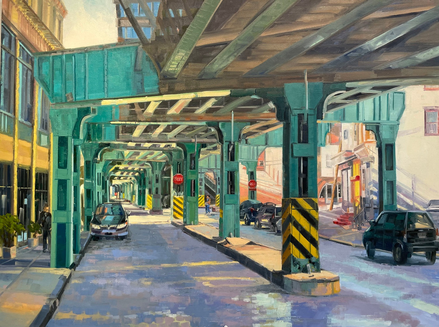 My paintings express the feeling of awe I have with the landscape. They are more likely to be joyous, energetic, vibrant, complex works as opposed to gentle, pastel or brooding canvasses. I look for the surprise in the composition, whether it be a statement made by a lone figure, a spot of orange found in an otherwise green wood, or an unusual lavender reflection in a river at dusk. It is exciting for me to take an ordinary scene and make it extraordinary. I am particularly drawn to the urban landscape and the shapes and patterns of light unique to the manmade environment.I have been painting my whole life, and professionally since 1994. I work only in oil. I studied at the University of Pennsylvania where I was greatly influenced by the work of Neil Welliver who was the Fine Arts Dept head at the time. I was mesmerized by the way he took an intricate landscape and broke it down into shapes of color. I went on to study painting at the Pennsylvania Academy of Fine Arts where I continued my focus on painting the urban landscape. I wanted to follow in the footsteps of Hopper, Sloan and Bellows of the ashcan school. I spent many years painting Philadelphia neighborhoods and have found the Schuylkill river to be a huge source of inspiration as well.