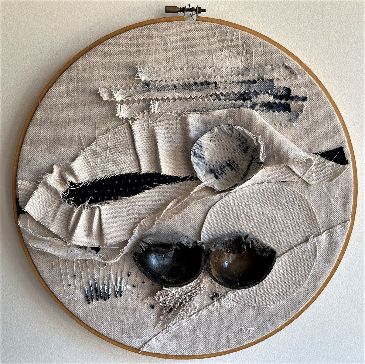Fabric, beads, acrylic, found objects