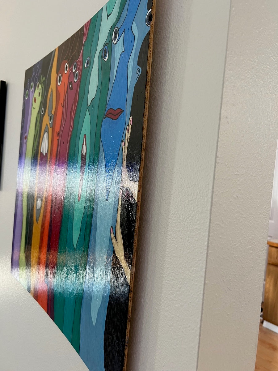 Night after night, Melissa found solace in painting as she immersed herself in the world of murder mystery TV shows. Over time, she amassed a collection of art pieces, each lovingly crafted on reclaimed wood with intriguing grain patterns. Encouraged by her husband, Melissa decided to share her creations with the world.