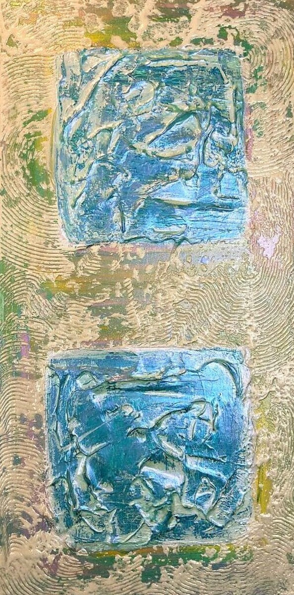 Modeling paste, acrylic and foil on wood panel (50.8x25.4 CM) Signature on back. No frame. Ready to hang.